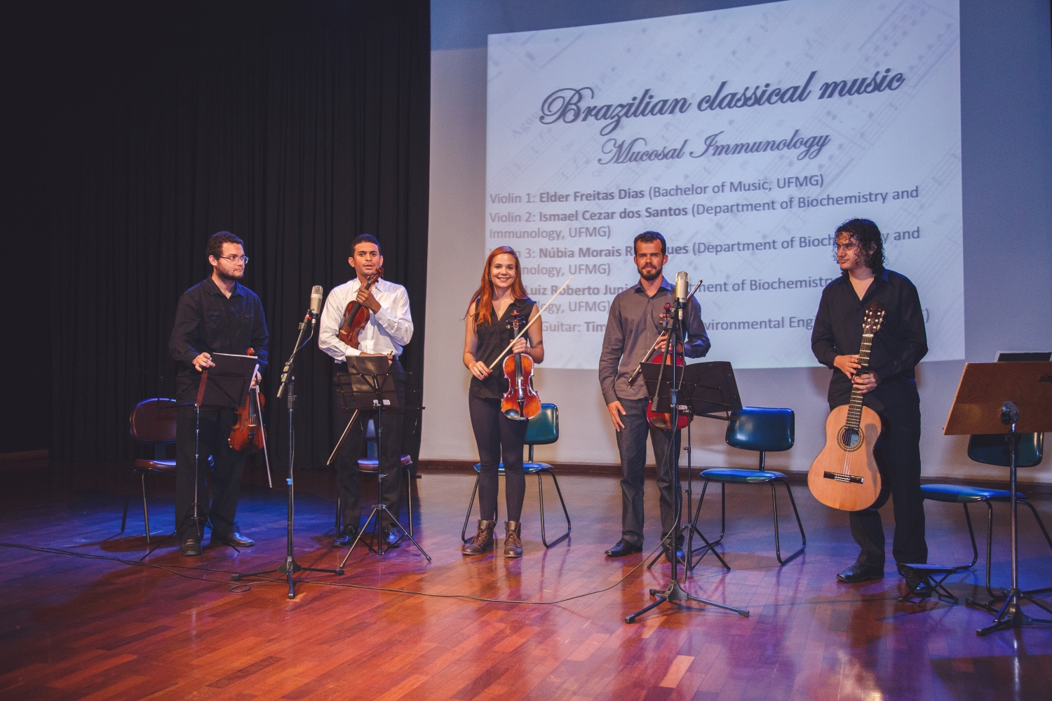 Além da parte científica, o evento contou com uma apresentação musical realizada pelos alunos do LIB, Laboratório de Imunobiologia, liderado pela pesquisadora Ana Caetano.